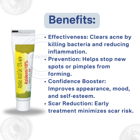 Aziderm 10% Gel | Acne Treatment Gel | 15gm