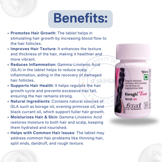 Keraglo Eva Tablet for Adult Women | Hair Fall Treatment Gluten Free | 30 TAB